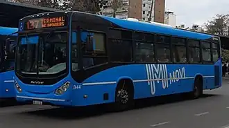 ![]() Interno 344 de la empresa Movi, prestando servicio en la línea 137. La Terminal de Omnibus es uno de los destinos. | ||