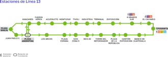 - ↑ Sanchez, Glenda. «Cuáles y dónde están las estaciones de la línea 13 del Transmetro de Guatemala». República.gt. Consultado el 23 de mayo de 2024.