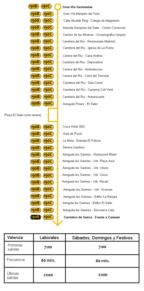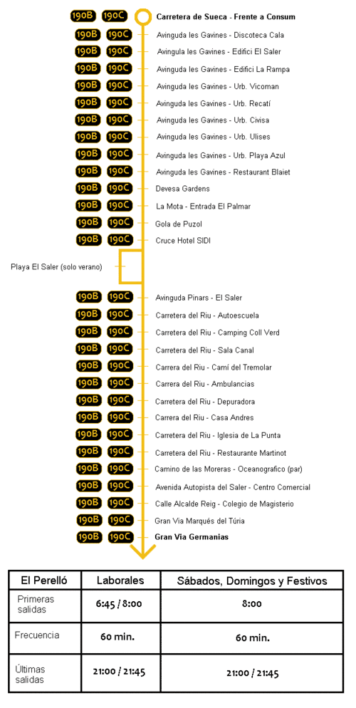 La línea 190A fue una línea de autobús interurbana en la provincia de Valencia, perteneciente al sistema de Metrobus y explotada por la compañía privada Herca, del grupo Transvia. Unía el centro de Valencia con las pedanías de Pinedo, El Saler, Les Gavines, El Perellonet y El Perelló, esta última en Sueca. Su frecuencia fue durante todo el año (exceptuando el verano) de 60 minutos. En verano se ampliaba la oferta hasta los 30 minutos, para poder dar servicio a las playas del sur de Valencia. Se consideraba una variante de la línea 190B, debido a que esta pasaba por El Palmar (algo que no hacía la 190A); a su vez, era una variante de la línea 190C (actualmente línea 191), la cual llegaba a Mareny de Barraquetes y la urbanización de Mareny Blau. En 2015, esta línea fue suprimida junto con la 190B debido a la creación de la línea 25 de la EMT (hoy dividida en las líneas 24 y 25).