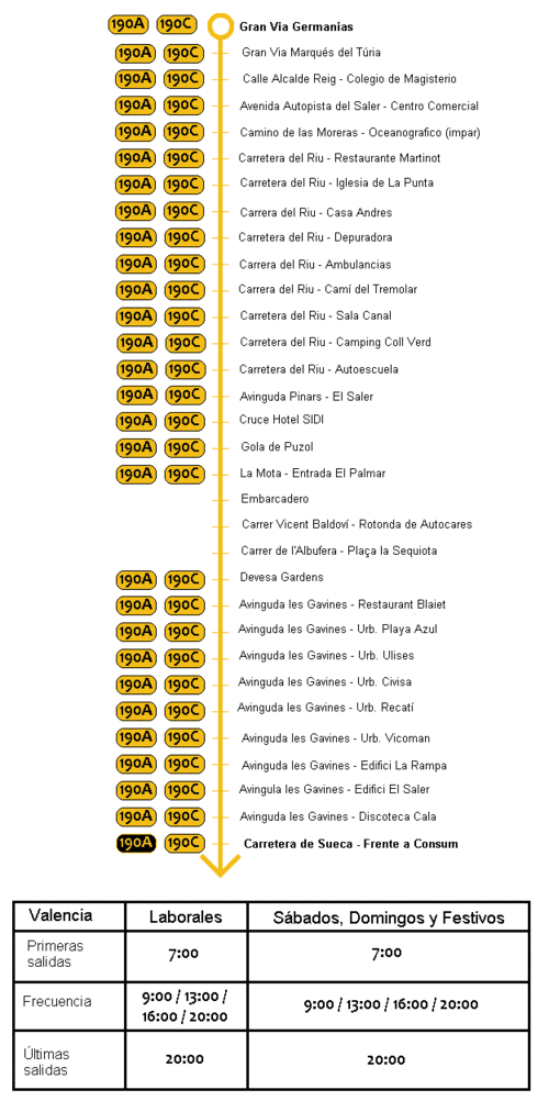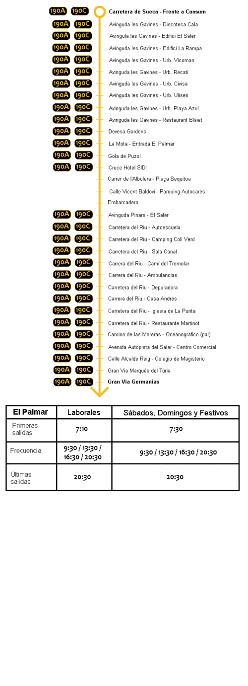 La línea 190B fue una línea de autobús interurbana en la provincia de Valencia, perteneciente al sistema de Metrobus y explotada por la compañía privada Herca, del grupo Transvia. Unía el centro de Valencia con las pedanías de Pinedo, El Saler, Les Gavines, El Palmar, El Perellonet y El Perelló, esta última en Sueca. Su frecuencia durante sus últimos años de servicio fue de 6 viajes al día en ambos sentidos, tanto en invierno como en verano. Se consideraba una variante de la línea 190A, debido a que esta no pasaba por El Palmar; a su vez, era una variante de la línea 190C (actualmente línea 191), la cual llegaba a Mareny de Barraquetes y la urbanización de Mareny Blau. En 2015, esta línea fue suprimida junto con la 190A debido a la creación de la línea 25 de la EMT (hoy dividida en las líneas 24 y 25).