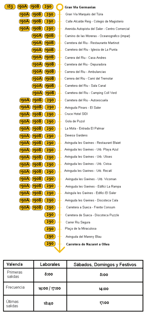 La línea interurbana de Valencia 190C, pertenece a Metrobús. Es explotada por la compañía privada Herca, del grupo Transvia.