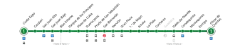 | Estaciones | 21 (+1 en estudio) | |||||||||||||||||||||||||||||||||||||||||||||||||||||||||||||||||||||||||||||||||||||||||||||||||||||||||||||||||||||||||||||||||||||||||||||||||||||||||||||||||||||||||||||||||||||||||||||||||||||||||||||||||||||||||||||||||||||||||||||||||||||||
