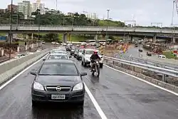 ![]() Paso elevado de la línea 1 del metro en el paseo central de la Avenida Bonocô. | ||
