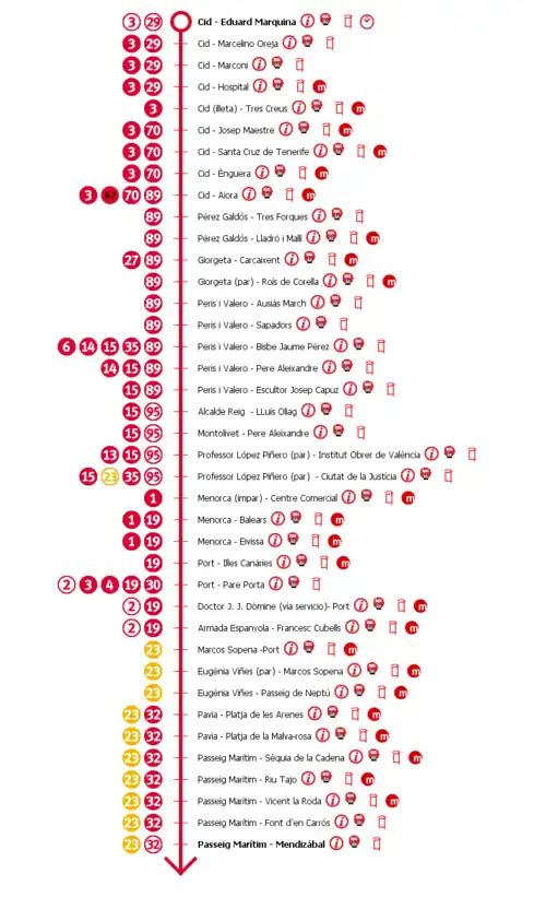 - ↑ Empresa Municipal de Transportes S.A.U. (20 de mayo de 2013). «Disfruta de les platges de València amb EMT». Consultado el 29 de mayo de 2013.