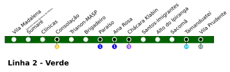 La Línea 2 - Verde es una de las seis líneas que conforman el Metro de São Paulo, en Brasil, y una de las trece líneas que conforman la Red Metropolitana de Transporte de São Paulo. Está constituida por el tramo comprendido entre las estaciones Vila Madalena y Vila Prudente. La línea también es conocida como Línea Paulista, por recorrer gran parte de la Avenida Paulista, uno de los centros financieros más importantes de São Paulo. Más allá de ser llamada Línea 2, esta fue la tercera en ser construida — la segunda, en realidad, fue la Línea 3 - Roja.