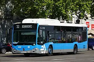 La línea 32 de la EMT de Madrid une la plaza de Jacinto Benavente con el área intermodal de Pavones, en el distrito de Moratalaz.