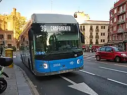 La línea 36 de la EMT de Madrid une la plaza del Emperador Carlos V con el barrio de Campamento.