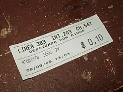 Antiguo boleto escolar de la Línea 383. La tarifa de este boleto no ha cambiado hoy en día.