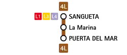 El tramo La Marina-Sangueta fue concebido como una prolongación de la línea 1 (el histórico Trenet de la Marina) para acercar más a los viajeros al centro de la ciudad. Pero finalmente, cuando se desviaron todas las líneas por el túnel urbano hasta Luceros, se construyó el tramo de unión de Sangueta-La Marina y se creó este servicio para conectar las líneas con el anterior final del trazado.