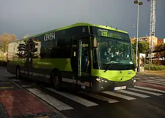 La línea 535 de la red de autobuses interurbanos de Madrid une la estación de Alcorcón Central con la urbanización Calypo Fado.