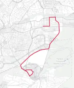 Al igual que las líneas A, H e I, esta era una línea que salía del término municipal de Madrid para dar servicio a este campus, que se encuentra en Pozuelo de Alarcón. Su recorrido era corto y tenía pocas paradas, lo que a su vez llevaba a una baja demanda, de menos de 250 viajeros diarios en el momento de su supresión.