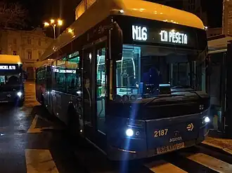 La línea N16 de la empresa municipal de autobuses de Madrid es una línea nocturna que conecta la Plaza de Cibeles con la Avenida de la Peseta (PAU de Carabanchel). Su recorrido es similar al de las líneas diurnas 17 (entre Puerta de Toledo y Carpetana) y 118 (entre Oporto y La Peseta).
