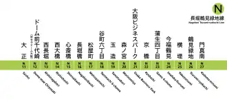| N13 | Nishi-Nagahori | 西長堀 | 1,6 | 34°40′33″N 135°29′13″E / 34.67583, 135.48694 | ||