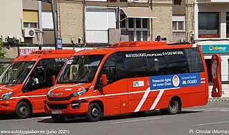 La línea R80 de Transportes de Murcia une Ronda Sur con la Plaza Circular por Santiago el Mayor.