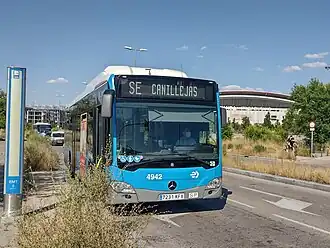 El Servicio Especial (S.E.) codificado como SE721 de la EMT de Madrid une el área intermodal de Canillejas con el Estadio Metropolitano.