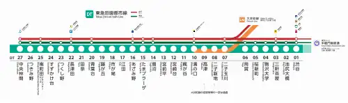 - Información de ruta de la línea Denentoshi - (en japonés) Tokyu Corporation
