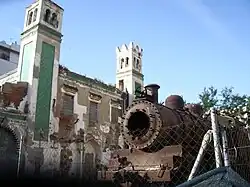 La estación de Negro de estilo neoárabe con cuatro torreones, en estado de semiabandono.