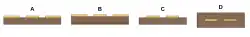 Una slotline es una ranura cortada en la metalización de la superficie superior del sustrato. Es el dual de la microstrip: una línea dieléctrica rodeada por un conductor en lugar de una línea conductora rodeada por dieléctrico.[57] El modo de propagación dominante es híbrido, cuasi-TE, con un pequeño componente longitudinal del campo eléctrico.[58][59]