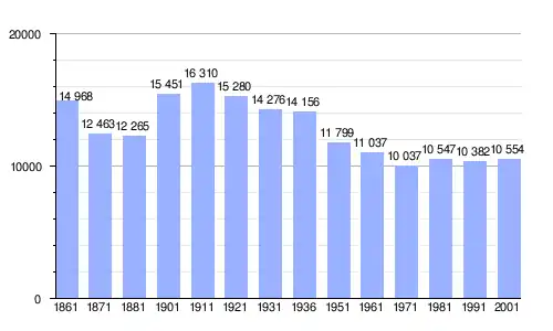 Gráfica de evolución demográfica de Lípari entre 1861 y 2001