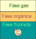 - Catálisis bifásica: En la cual se emplea una fase orgánica o acuosa, en donde se encuentran los reactivos y los productos y una fase fluorada que contiene el catalizador. La reacción ocurre en la interfase o en la fase catalítica. Así, simplemente por decantación, las dos fases se separan fácilmente y el sistema catalítico se recicla. En este caso, cuando el catalizador se encuentra en una fase fluorada, existen problemas de solubilidad del mismo en ese medio, por lo que se suele modificar añadiéndole cadenas fluoradas para hacerlo más afín al disolvente.