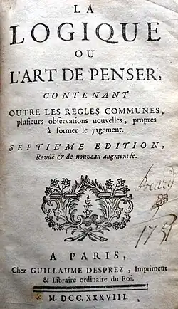 - ↑ Arnauld, Antonio, Nicole, Pierre (1992). Logique ou l’art de penser (en francés). Gallimard. p. 313-314.