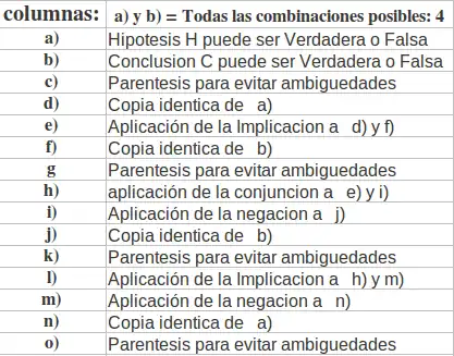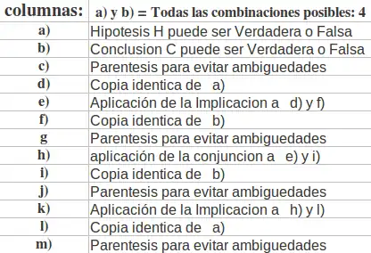 Queda demostrado por la columna l), debido a que en ella todos los valores son verdaderos.
