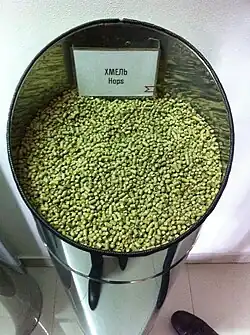 El lúpulo suele secarse en un secadero antes de utilizarse en el proceso de elaboración de la cerveza.[48] A veces (desde 1990) se utiliza lúpulo sin secar o "húmedo".[49][50]