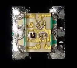 En 2001[41]​ y 2002[42]​ se llevaron a cabo procesos para hacer crecer ledes de nitruro de galio en silicio. Como consecuencia de estas investigaciones, en enero de 2012 Osram lanzó al mercado ledes de alta potencia de nitruro de galio-indio crecidos sobre sustrato de silicio.[43]