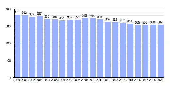 | Gráfica de evolución demográfica de Lañas (parroquia) entre 2000 y 2023 |