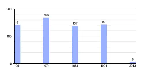 | Gráfica de evolución demográfica de Lađevići entre 1961 y 2013 |