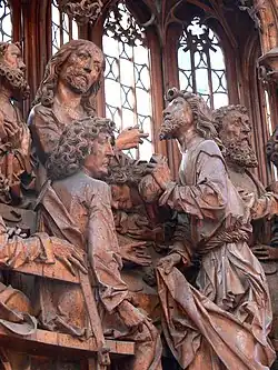 El retablo de la iglesia principal de la casa de Martín Lutero en Wittenberg es obra de Lucas Cranach el Viejo (con su hijo y su taller), con una representación tradicional de la Última Cena en el panel principal, con la salvedad de que el apóstol al que se le sirve la bebida es un retrato de Lutero, y el servidor puede ser uno de Cranach. Cuando se instaló el cuadro en 1547, Lutero ya había muerto. Otros paneles muestran a los teólogos protestantes Philipp Melanchthon y Johannes Bugenhagen, pastor de la iglesia, aunque no en escenas bíblicas. Otras figuras de los paneles son probablemente retratos de personajes de la ciudad, ahora inidentificables.[28] Otra obra, el Retablo de los Reformadores en Dessau, de Lucas Cranach el Joven (1565, ver galería) muestra a todos los apóstoles, excepto Judas, como eclesiásticos o nobles protestantes, y ahora es el Cranach más joven el que aparece como copero. Sin embargo, estas obras son raras, y las pinturas protestantes pronto volvieron a las representaciones más tradicionales.[29]