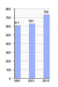 | Gráfica de evolución demográfica de La Aurora entre 1991 y 2010 |
