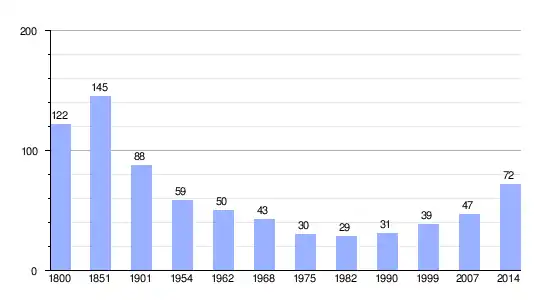 | Gráfica de evolución demográfica de La Balme-d 'Épy entre 1800 y 2014 |