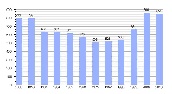 | Gráfica de evolución demográfica de La Côte-d'Aime entre 1800 y 2013 |