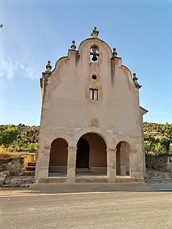 - La iglesia parroquial de San Blas. Hay noticias de la existencia de un templo en 1324, muy modificado a finales del siglo XVI. Es una construcción del estilo gótico usual en la zona del Matarraña. planta con una sola nave y ábside poligonal, exterior con gruesos contrafuertes y utilización de bóveda de crucería simple. Se trata de un edificio de mampostería y cantería. Es una obra sobria, en la que predomina el macizo sobre el vano. Se abren dos pequeños y sencillos vanos en el lado de la Epístola: uno en la cabecera y otro en los pies. Interiormente no se ve ningún capitel u otro motivo decorado. Están labradas las claves de las bóvedas de crucería: en dos de ellas se representó la cruz de Calatrava (orden de la que dependió) y en otra, una caña (motivo central del escudo de esta población). Un documento del Archivo Histórico de Protocolos de Alcañiz del 6 de febrero de 1660 hace referencia a unas sencillas obras de reforma que necesitaba esta iglesia, este documento proviene de Toledo y en él se especifica claramente que esta iglesia era propiedad de la Orden de Calatrava. Exteriormente destaca su fachada principal: está situada a los pies y en ella se abre una sencilla puerta en arco de medio punto, flanqueada por dos gruesos contrafuertes. Está coronada por una gran espadaña posterior.[14]