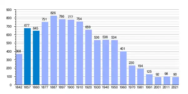 | Gráfica de evolución demográfica de La Calzada de Béjar[3] entre 1842 y 2021 |