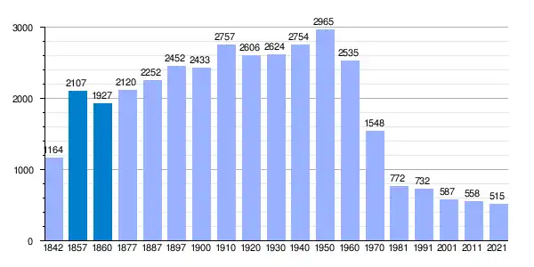 | Gráfica de evolución demográfica de La Calzada de Oropesa[7] entre 1842 y 2021 |