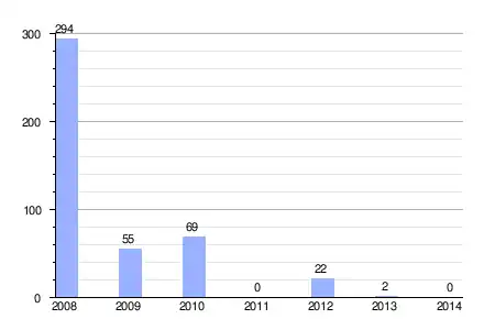 | Gráfica de evolución de la deuda viva del ayuntamiento entre 2008 y 2014 |