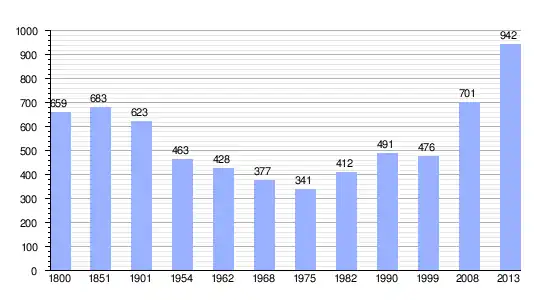 | Gráfica de evolución demográfica de La Chapelle-du-Lou-du-Lac entre 1800 y 2013 |