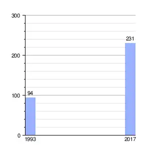 | Gráfica de evolución demográfica de La Coja entre 1993 y 2017 |