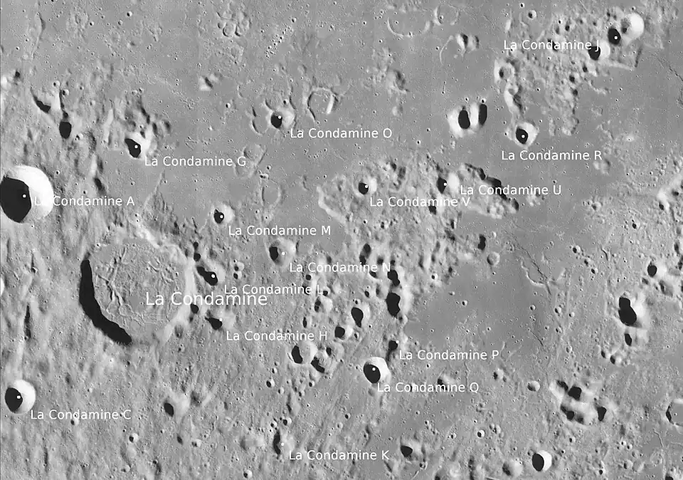 - The-moon.wikispaces.com: La Condamine Archivado el 31 de mayo de 2018 en Wayback Machine.