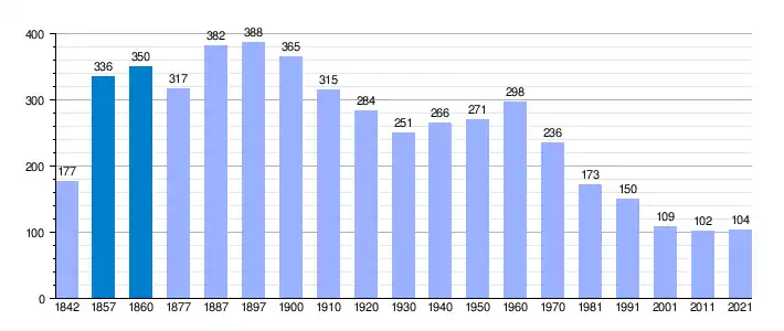 | Gráfica de evolución demográfica de La Cueva de Roa[12] entre 1842 y 2021 |