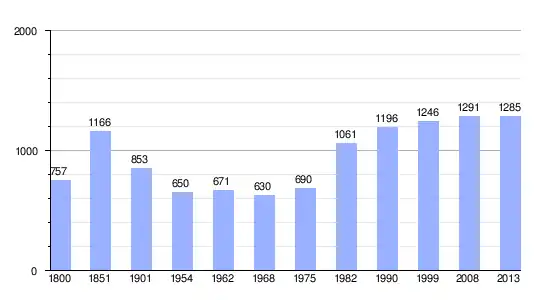 Los datos demográficos contemplados en este gráfico de la comuna de La Daguenière[4] se han cogido de 1800 a 1999 de la página francesa EHESS/Cassini, y los demás datos de la página del INSEE.[5]