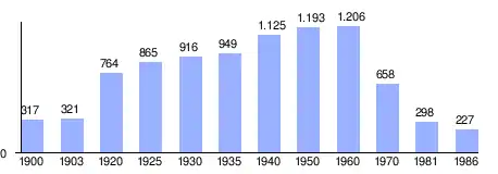 | Evolución demográfica de La Encina entre 1900 y 1986 |