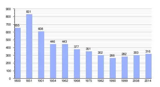 Los datos demográficos contemplados en este gráfico de la comuna de La Ferrière-Harang[4] se han cogido de 1800 a 1999 de la página francesa EHESS/Cassini, y los demás datos de la página del INSEE.[5]