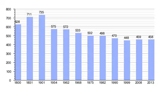 Los datos demográficos contemplados en este gráfico de la comuna de La Ferrière[5] se han cogido de 1800 a 1999 de la página francesa EHESS/Cassini, y los demás datos de la página del INSEE.[6]