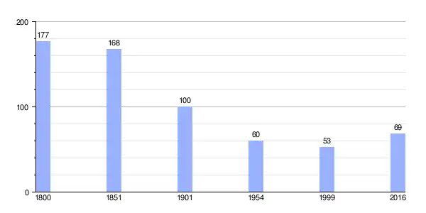 | Gráfica de evolución demográfica de La Frédière entre 1800 y 2016 |