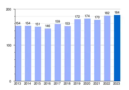 | Gráfica de evolución demográfica de La Garnatilla entre 2013 y 2023 |