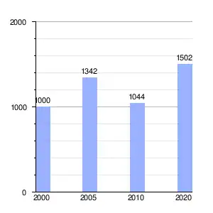 Cuenta con 1502 habitantes lo que representa un incremento promedio de 3.8% anual en el período 2010-2020 sobre la base de los 1044 habitantes registrados en el censo anterior. Ocupa una superficie de 0.8795 km², lo que determina al año 2020 una densidad de 1708 hab/km².[6]