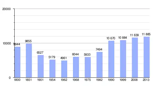 | Gráfica de evolución demográfica de La Hague entre 1800 y 2013 |